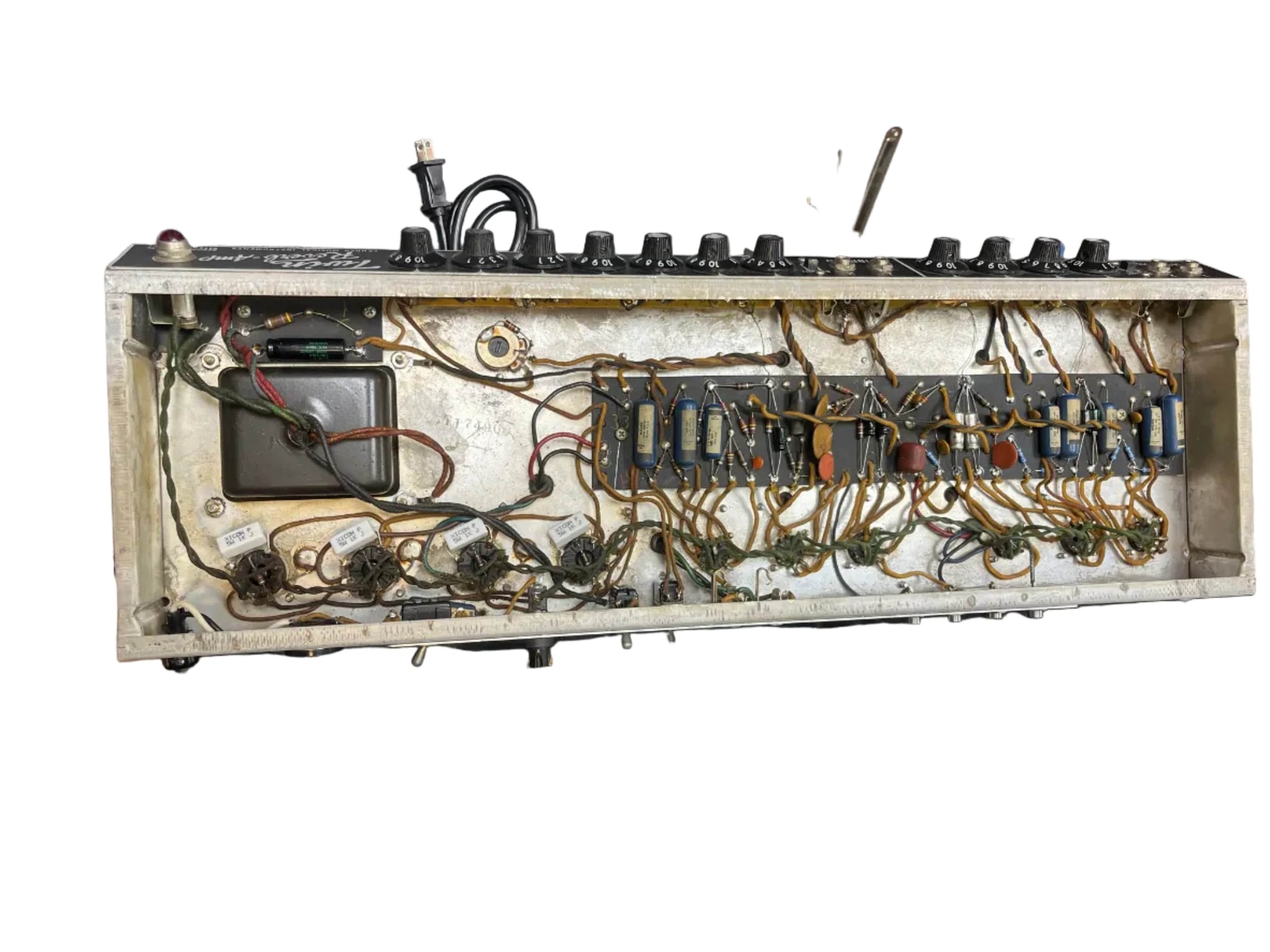 This one is a very clean example for its age. Cosmetics are strong overall. The control panel is clear and readable, and the grille cloth and tolex present well with the classic blackface vibe players and collectors want.